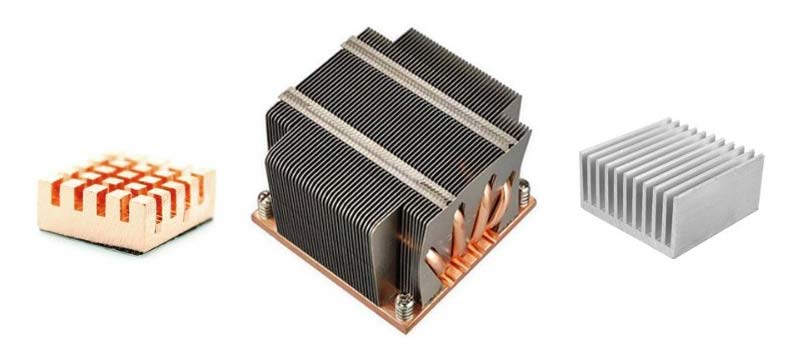 یکی از مهم ترین مباحثی که در رابطه با این موضوع وجود دارد این بوده که این هیت سینک ها باید از چه جنسی ساخته شوند و چه ماده ای بدین منظور مورد بهره وری قرار بگیرد. اصلی ترین ویژگی که ماده سازنده و تشکیل دهنده باید داشته باشد، رسانش حرارتی بالا است. فلزات ایده آل ترین گزینه برای بهره مندی از این ویژگی هستند.